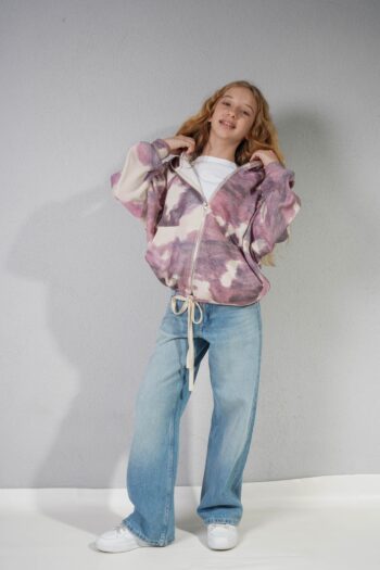 Kız Çocuk Baskılı Kısa Kol Bisiklet Yaka Sweatshirt